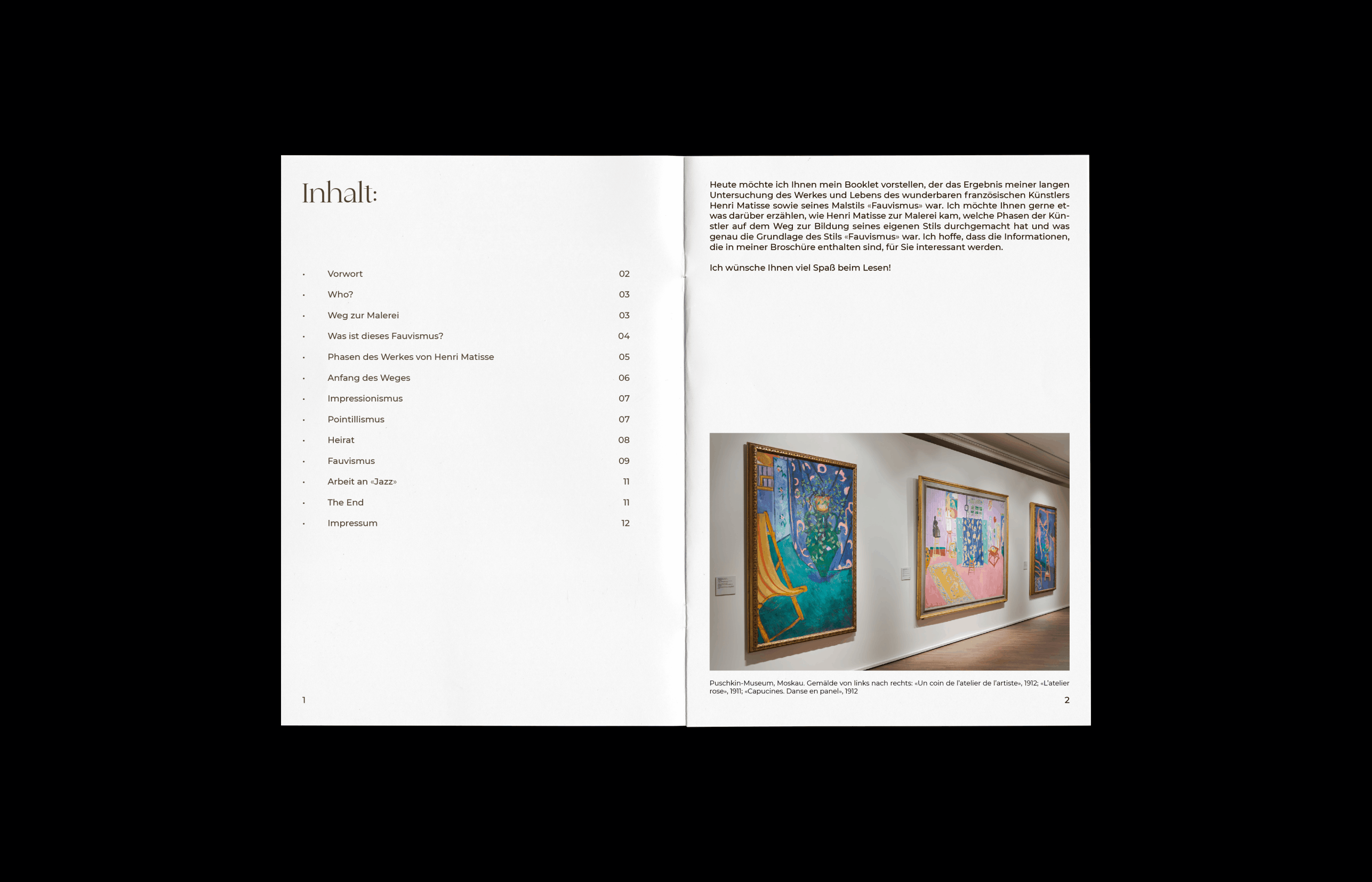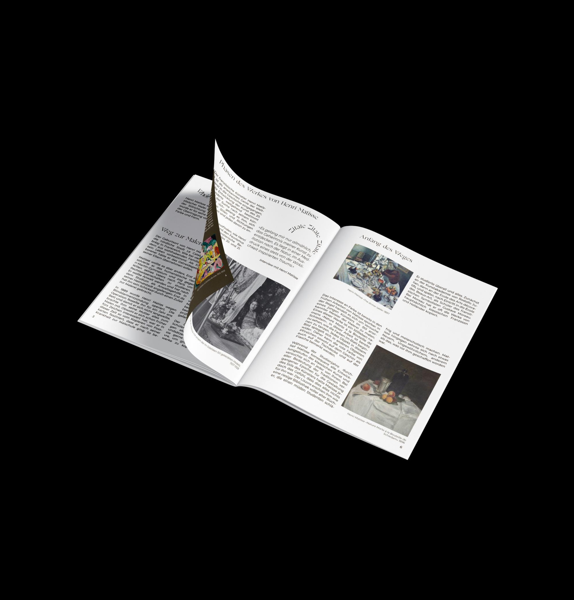 Welcome to my project showcasing my magazine dedicated to Henri Matisse. Created as part of my Art History course at the university, this magazine offers insights into Matisse's life and artistic journey. Researched, written, and designed by me, it provides a comprehensive overview of the renowned artist's legacy. Explore the vibrant world of Henri Matisse through this project.
