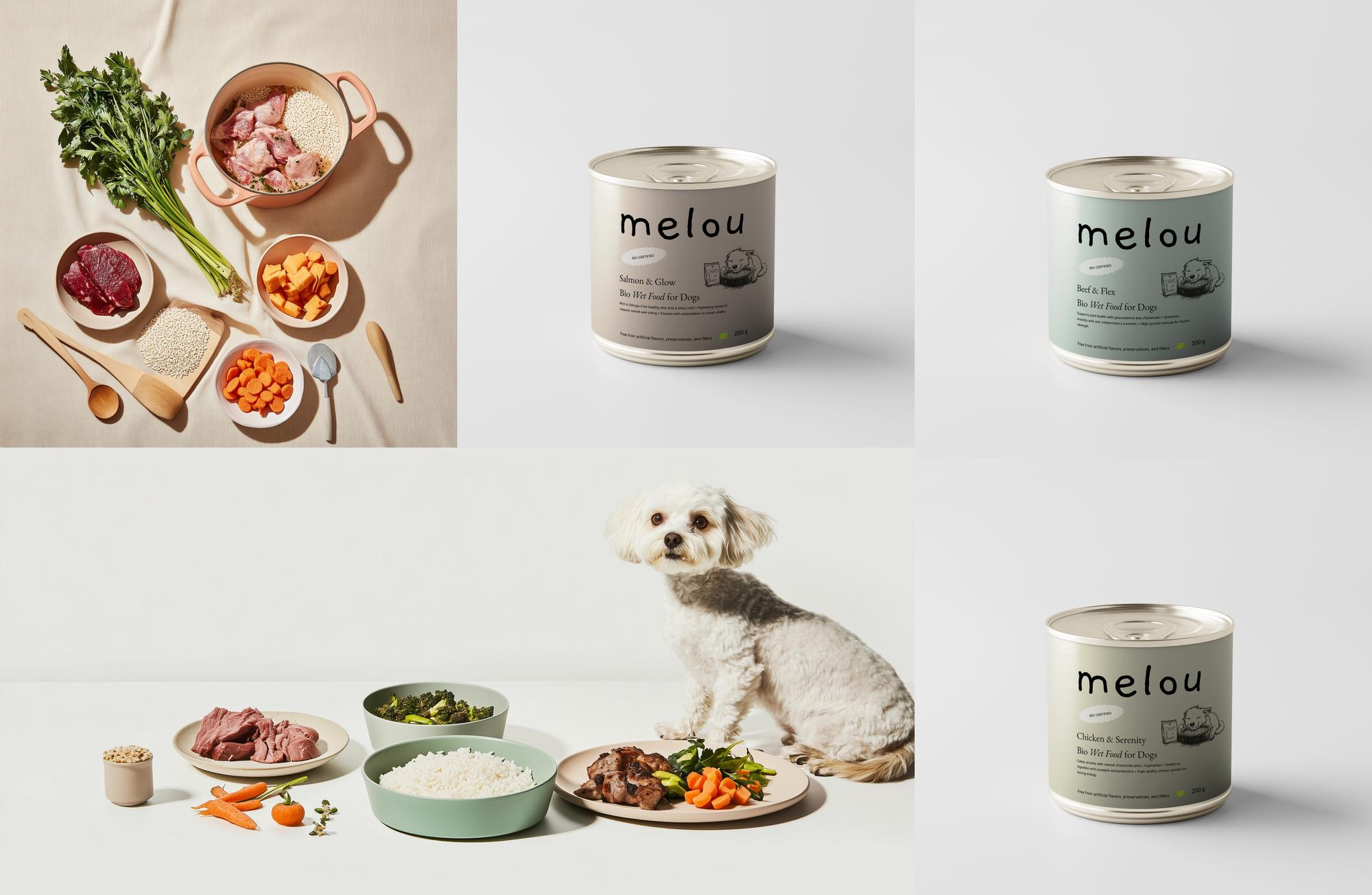 Pet food branding often swings between clinical and cartoonish — neither of which captures how seriously many owners think about what they feed their animals. The goal was to design an identity for Melou that felt warm and approachable while still communicating genuine care about ingredients, origin, and craft.